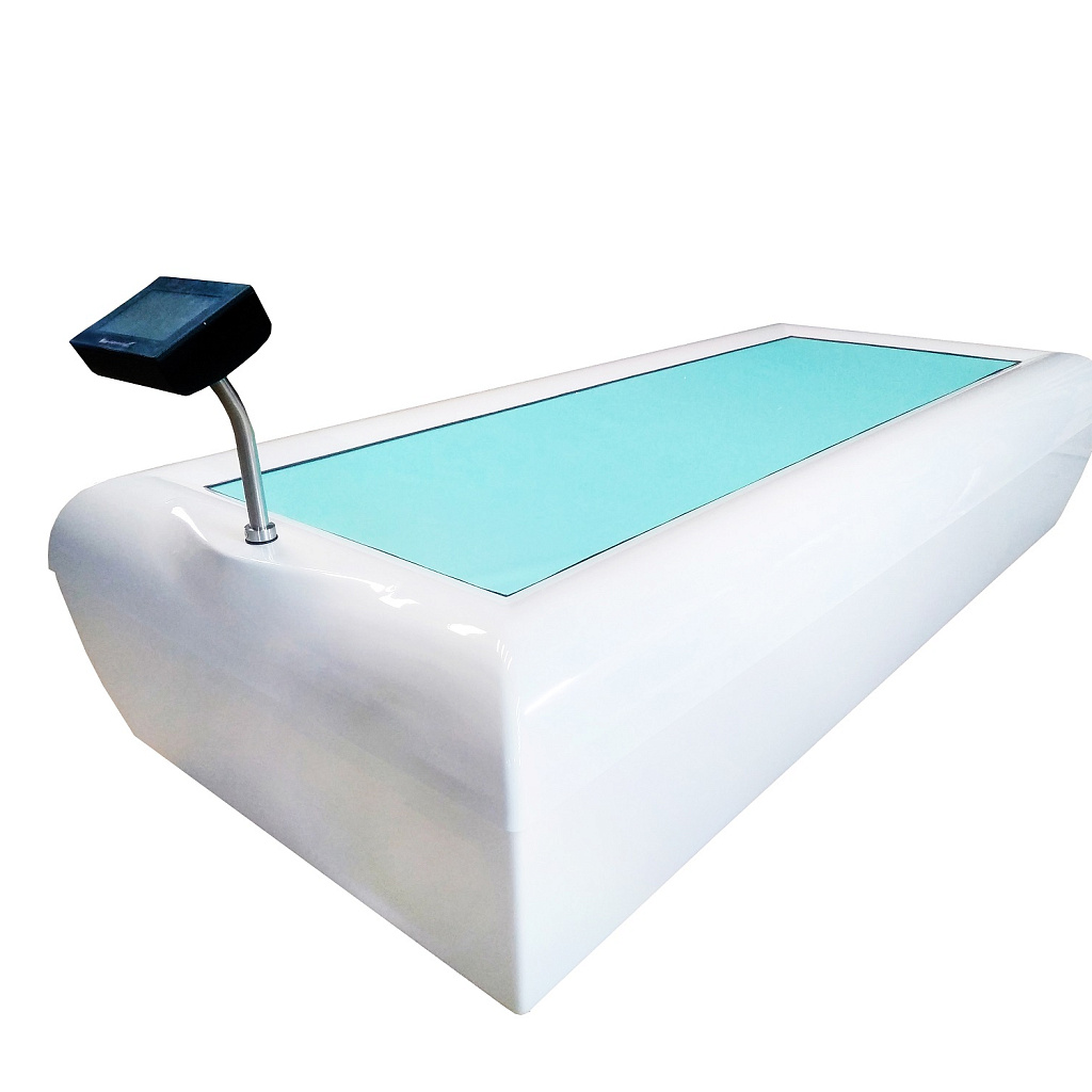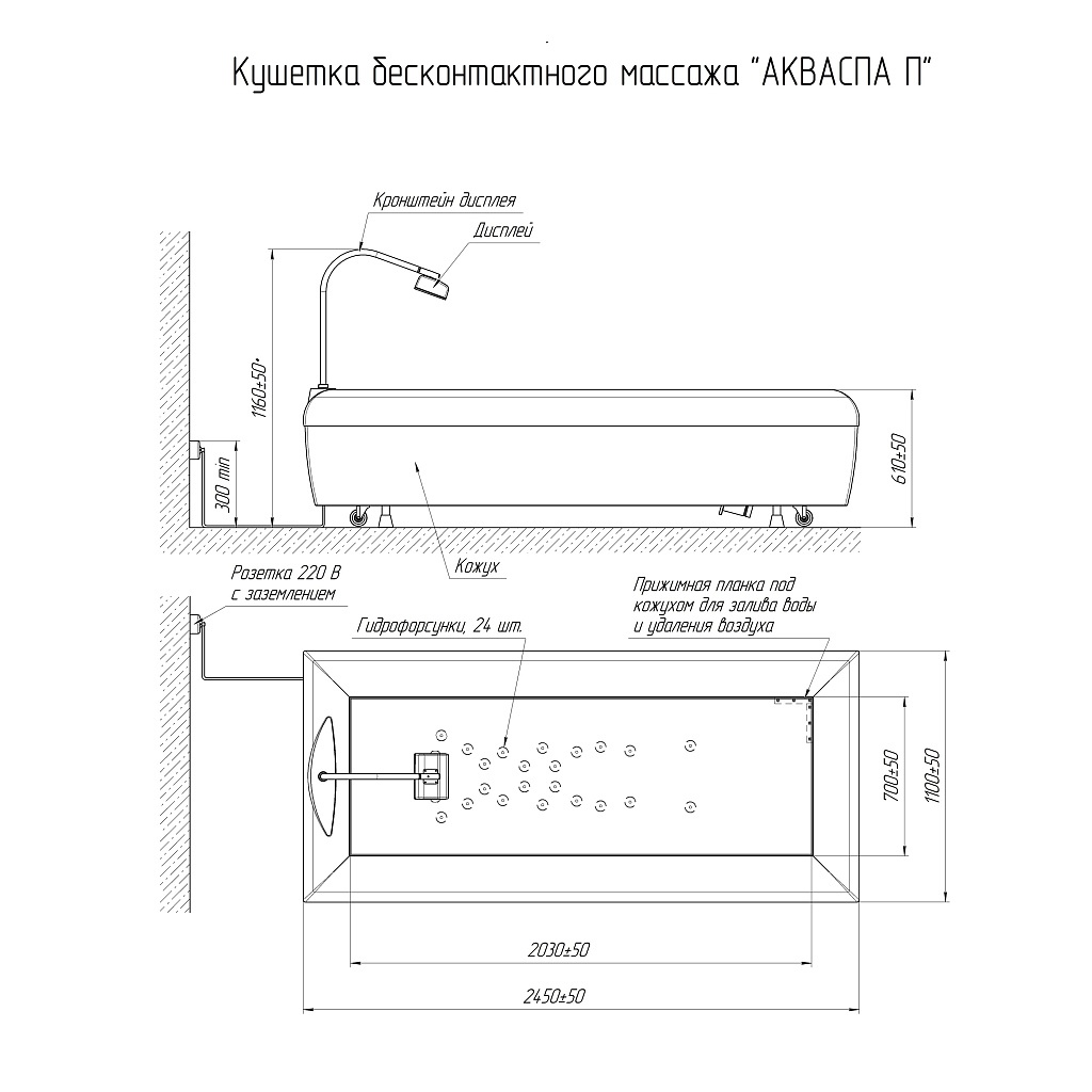 В отличие от ванны для подводного массажа, бесконтактная гидромассажная ванна позволяет проводить гидромассаж тела без его погружения в водную среду.