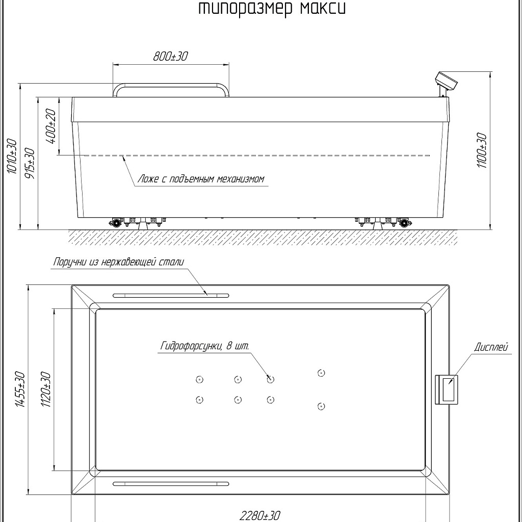 | Размеры ванны (без учета дисплея и поручней) (ДхШхВ), мм | 2610х1455х915 |